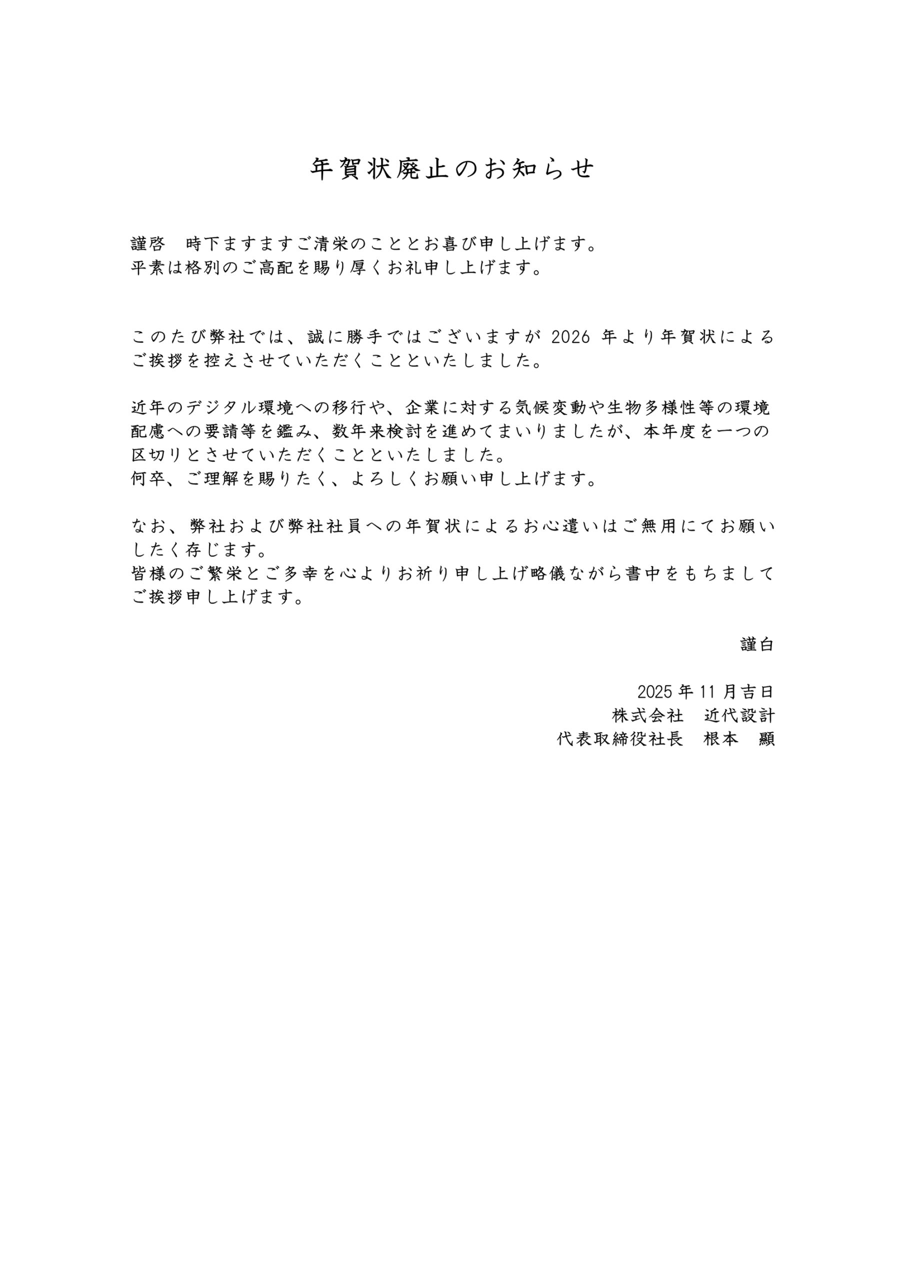 New 2025.11.04 年賀状廃止のお知らせ